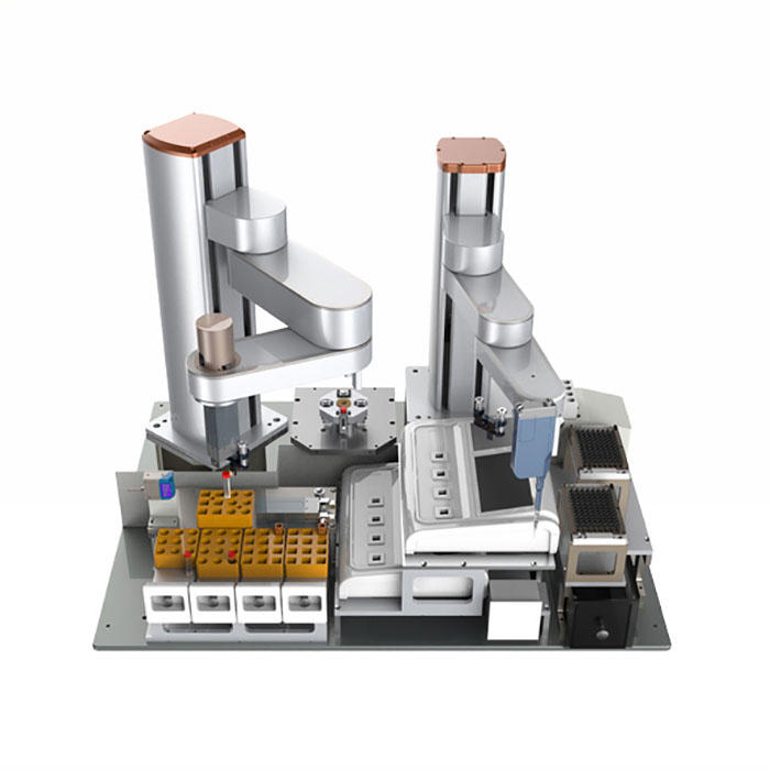 可以根據客戶實際場景和業務需求,滿足核酸提取、吸附檢測、熒光樣本處理、分子診段、基因測序、血清同型半胱氨酸等全自動臨床診斷布局。