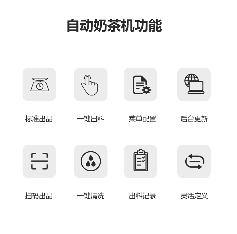 - 自帶冰柜:對于不同的飲品調(diào)制方式,可分類進行冷藏與加熱;