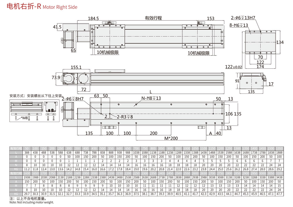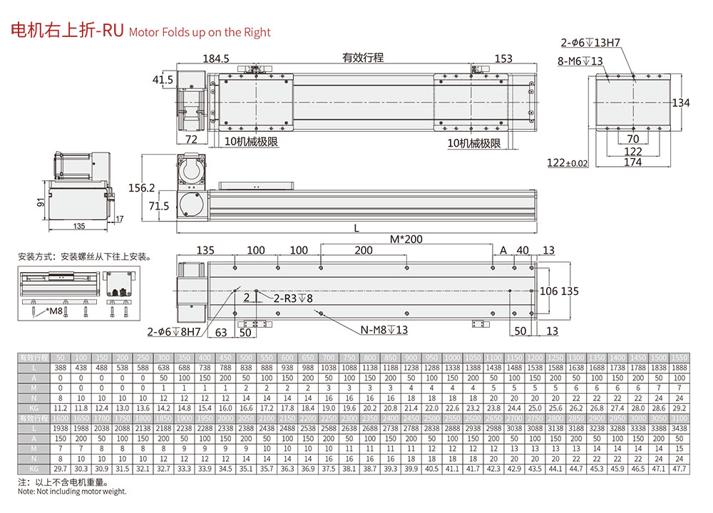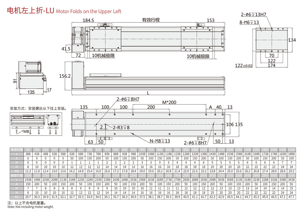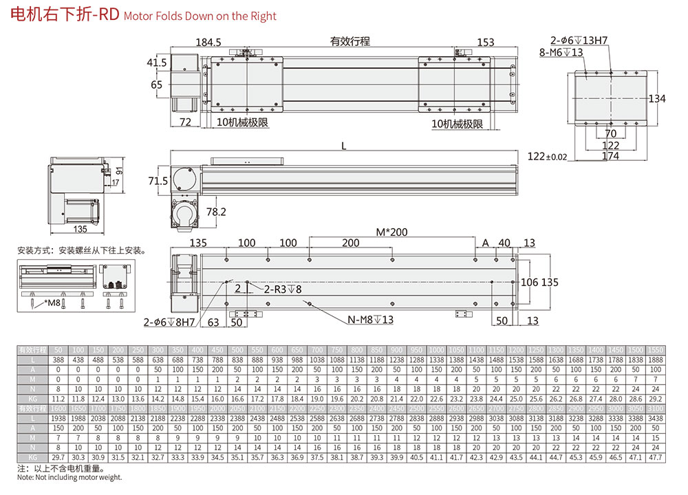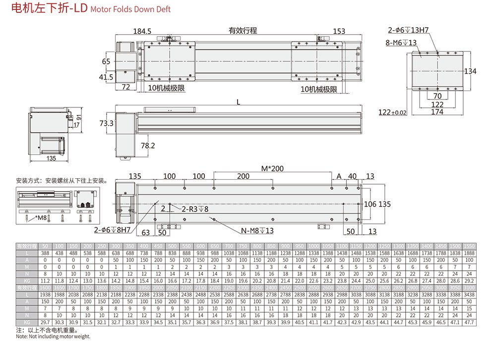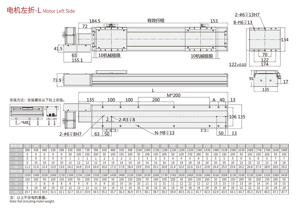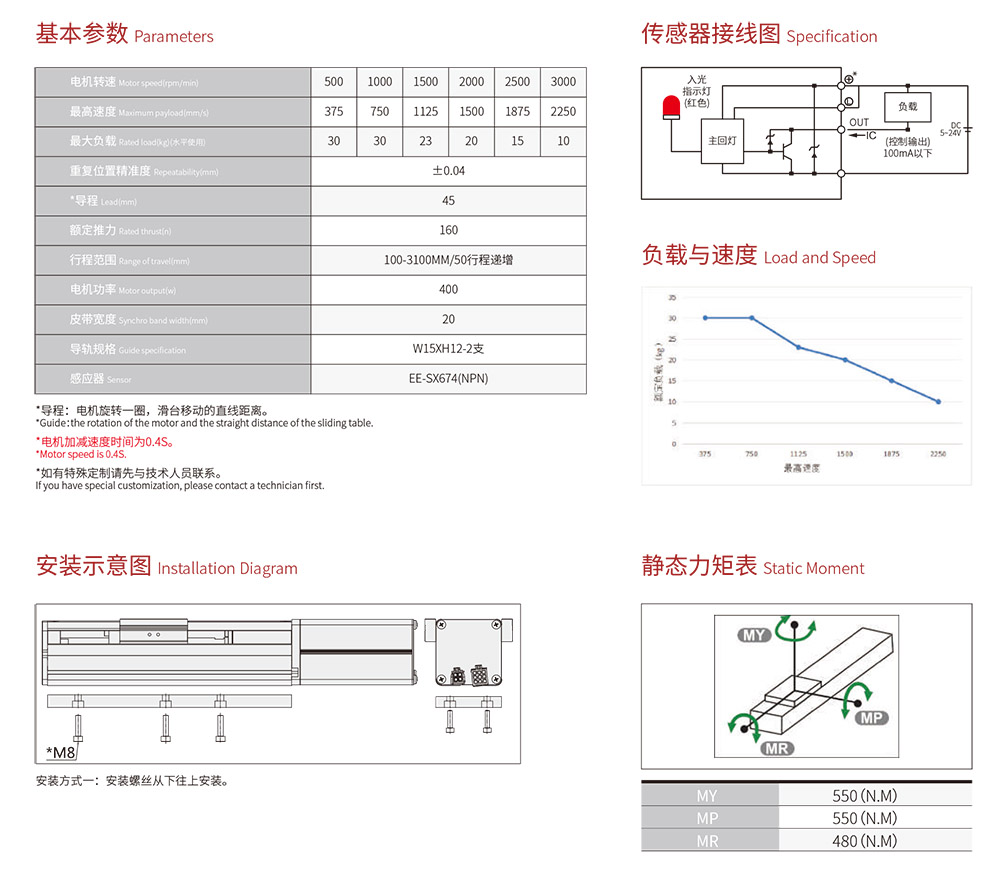 行程范圍 Range of travel(mm) 100-3100MM/50行程遞增