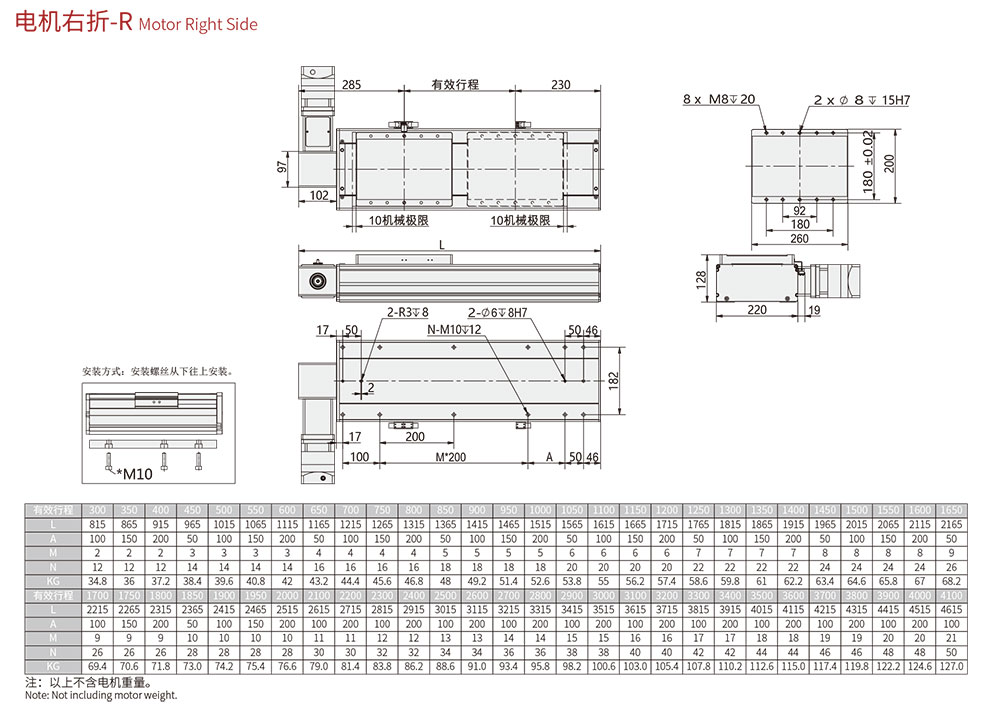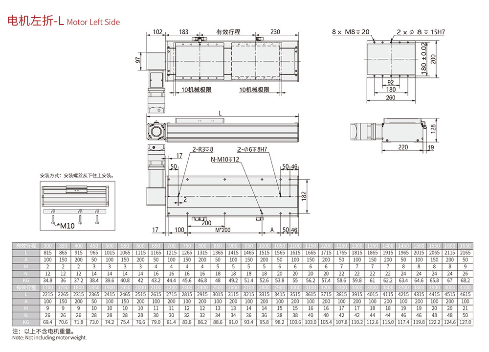 行程范圍 Range of travel(mm) 100-4500MM/50行程遞增